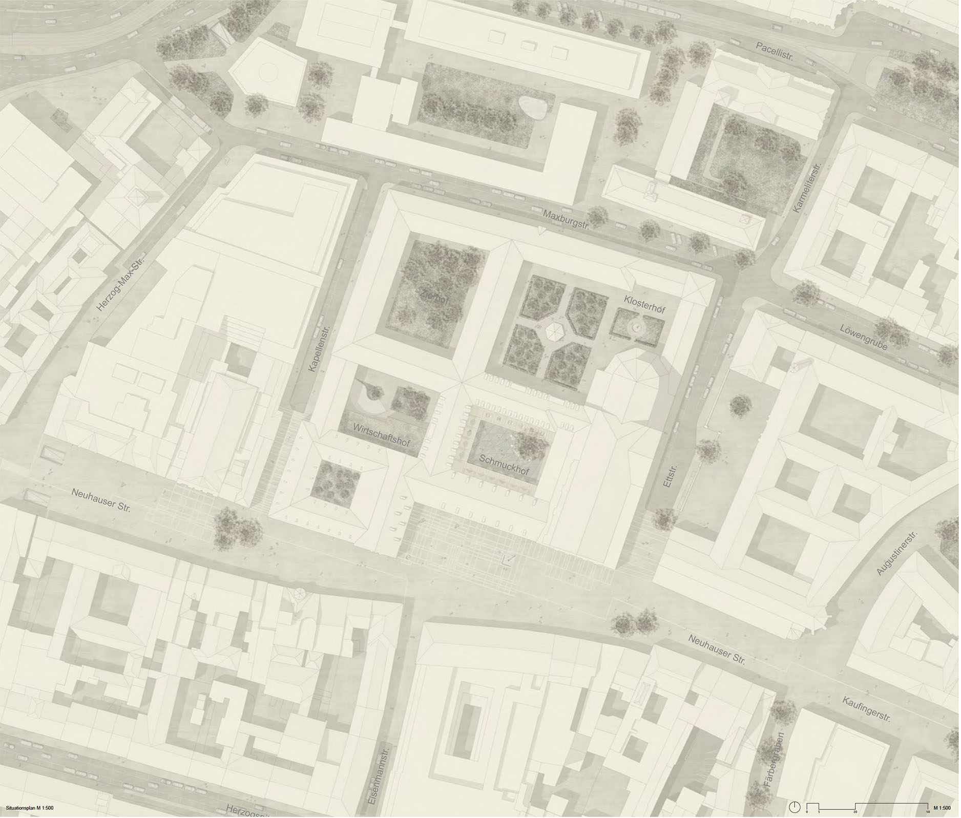 Das Geviert der Alten Akademie in der Neuhauser Straße, zu dem auch die Kirche St. Michael gehört, stellt einen der historisch, stadträumlich und architektonisch bedeutsamsten Gebäudekomplexe in den Grenzen der Altstadt dar. Ursprünglich Jesuitenkolleg, später in Teilen Akademie der Bildenden Künste, danach Standort verschiedener kirchlicher, staatlicher und privater Nutzungen, soll der wechselhaften Geschichte des Ortes nun ein neues Kapitel hinzugefügt werden. Als Standort für Einzelhandels- und gastronomische Nutzungen sowie für Büros und innerstädtisches Wohnen wird ein gemischt genutzter Gebäudekomplex entwickelt. Das Vorhaben soll dem Geviert der Alten Akademie in seinem denkmalgeschützten Bestand Rechnung tragen und es zugleich angemessen und qualitätsvoll weiterentwickeln.