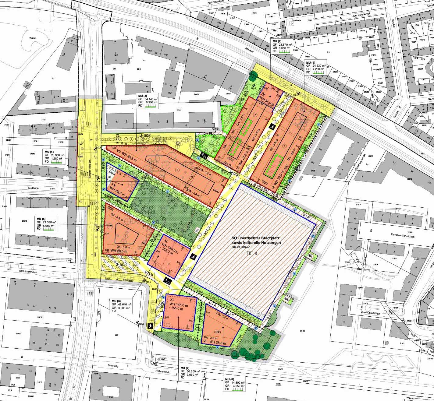 Über ein Planungsverfahren wurde zunächst ein qualitätvolles städtebauliches und freiräumliches Konzept (Masterplan) erarbeitet. Auf der Grundlage des Masterplans wurde der Bebauungsplan mit Grünordnung und die Änderung des Flächennutzungsplans im Parallelverfahren durchgeführt.